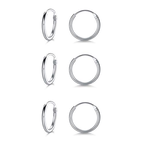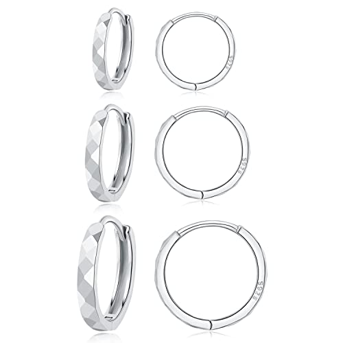 Cangall Silver Hoops Earrings for Women, 3 Pairs 925 Sterling Silver Hoop Earrings Set, 9/11 / 13mm Small Sleeper Hoop Earrings, Cartilage Huggie Earrings Set for multiple piercings