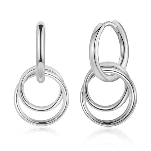 JAHAMIA Silver Hoops Earrings for Women, Chunky Double Hoop Sterling Silver Hoops Link Earrings 925 with Double Hoop, Dangle Round Interlocking Earrings Jewellery Girls Gifts