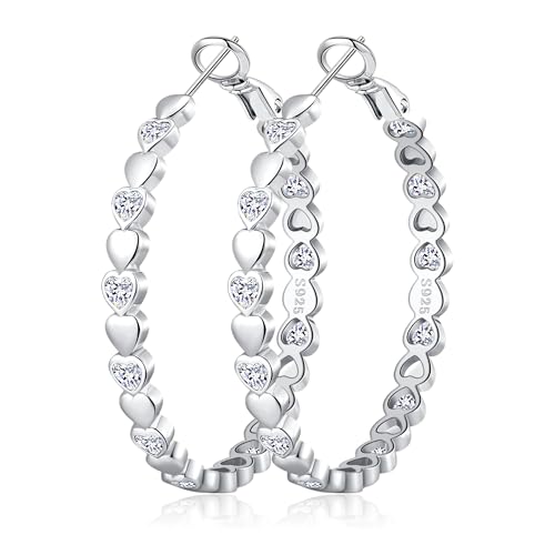 BMMYE Sterling Silver Hoop Earrings for Women Heart Cubic Zirconia Silver Hoops Earrings for Girls Women 20MM Small Silver Hoops