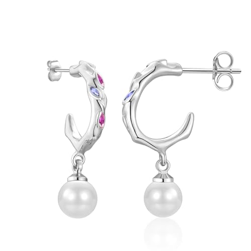 Shuxin Silver Hoops Earrings for Women Pearl Drop Earrings Sterling Silver Cubic Zirconia Stud Earrings for Girls Vintage Huggie Earrings Jewellery Gifts for Women