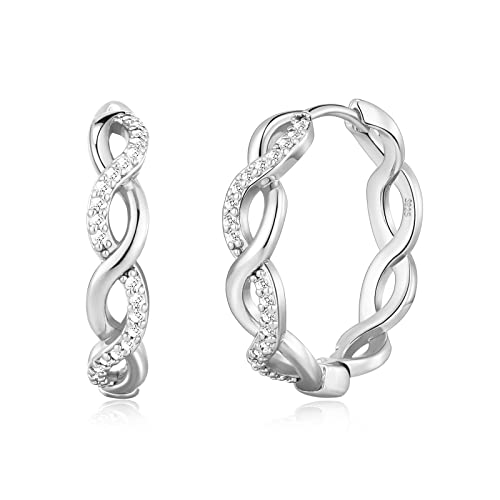 PABBEU Sterling Silver Hoop Earrings,Hypoallergenic Twisted Silver Hoops Earrings for Women Lightweight Silver Hoop Earrings with Cubic Zirconia Hoops 15MM