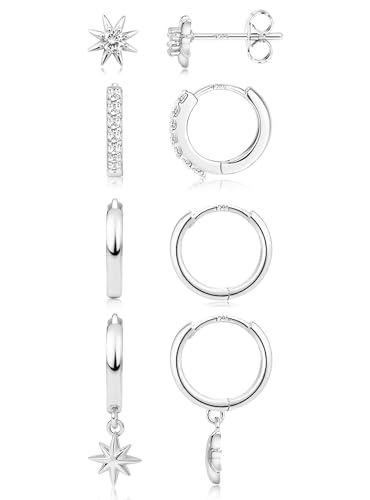 LOLIAS 4 Pairs Sterling Silver Hoops Earrings for Women Sterling Silver Earrings for Women Small Hoop Earrings Hypoallergenic Stackable Sleeper Huggies Earrings 925 Silver Stack Earrings Set