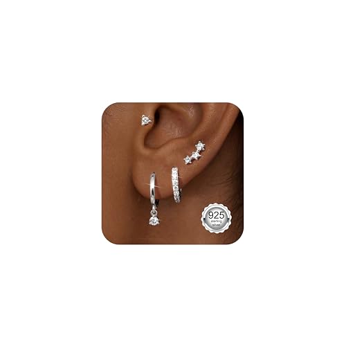 925 Sterling Silver Earrings Star Moon Dangle Earrings Womens Silver Drop Earrings with 3A Cubic Zirconia Silver Hoop Earrings Small Sleeper Silver Hoops Earrings for Women Girls