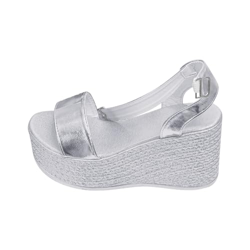 Cocila Womens Sandals Shoes Buckle Casual Beach (Silver, 6) Wide Fit Size 7 Sandles Women Brown Ladies Espadrille Footwear For Plantar Fasciitis Wedges Wedge Heels White 5 Flat Wedding Foam