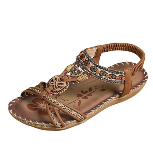 Cocila Comfy Sandals for Women UK Women's Beach Hollow Casual Slippers Flat Shoes (Brown, 5.5) Gold Wedges Walking Glitter Silver Heels Orthopedic Foot Wedge Beaded Soft Sole Black Summer Size 5