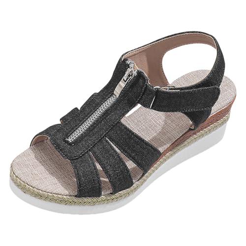Cocila Wedge Sandals For Women Women'S Cute Open Toe One Comfort Flat Summer Black, 5.5 Ladies Silver Shoes Black Glitter Heels White Cork Sandal Size 5 Uk Espadrilles Womens Wedges Strappy 6