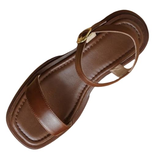 Cocila Wedge Sandals For Women Women'S Summer Flat Bottom Buckle One Line Large Beach Shoes Roman Brown, 7.5 Size 6 Wedges Silver Glitter Heels Comfy Black And 5 Gold Shoe With Arch Support