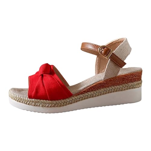 Cocila Wedge Sandals For Women Women'S Casual Flat Roman Shoes Summer Fashion Ladies Bowknot Sandal Boots Red, 4.5 Green Wedding Cushioned Silver Size 6 Glitter Heels Black 5 Leather Elastic