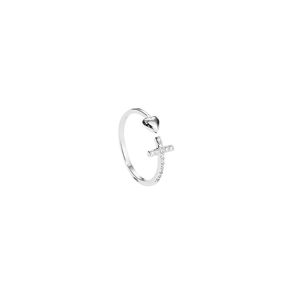 925 Sterling Silver Heart Cross Ring Fade Fade Open Ring Love Diamond Niche Ring Silver Heart Cross Ring With Open Heart And Diamonds