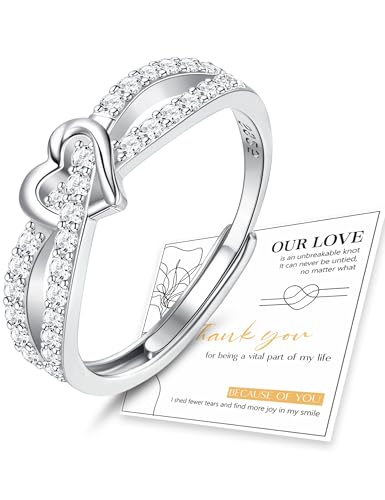 Chriscoco 925 Sterling Silver Ring for Women Silver Love Heart Ring Adjustable Cubic Zirconia Rings Simulated Diamond Ring Engagement Promise Wedding Rings with Jewellery Box