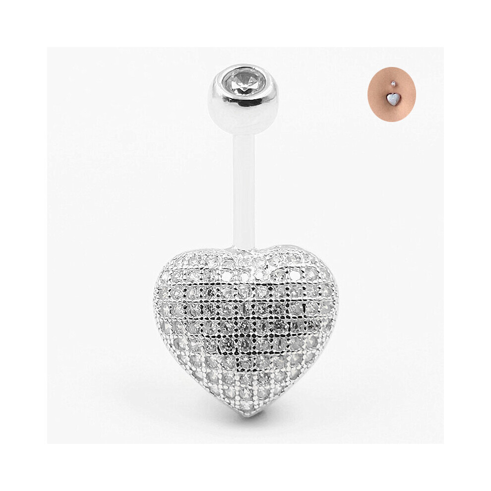 925 Sterling Silver Heart Belly Buttton Ring Cubic Zircon Navel Piercings Jewelry For Women