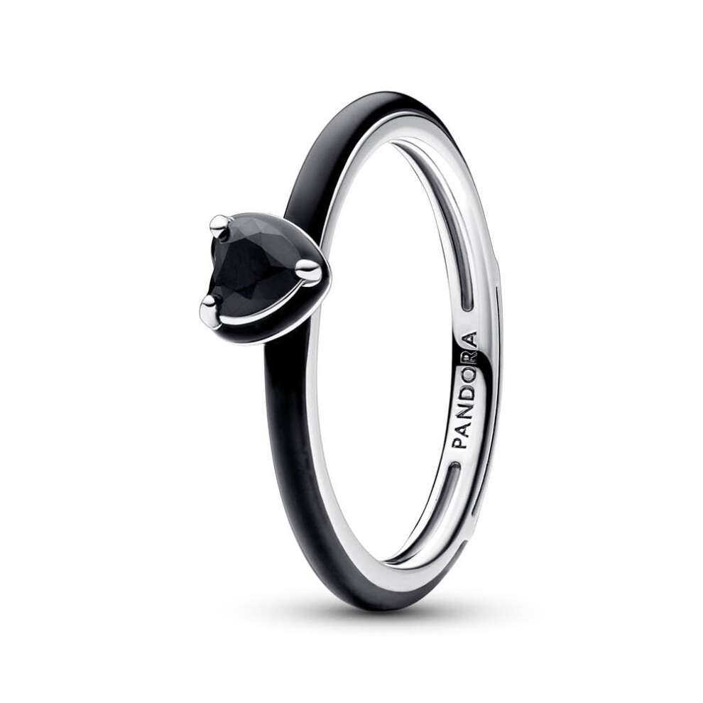 ME Sterling Silver Heart Ring with Black Crystal and Black Enamel 60