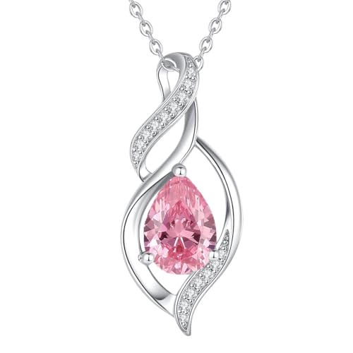 FANCIME October Birthstone Necklace for Women Pink Tourmaline Teardrop Necklace 925 Sterling Silver Infinity Love Birthday Jewellery Gifts for Mom Women, 16"+2" Inches