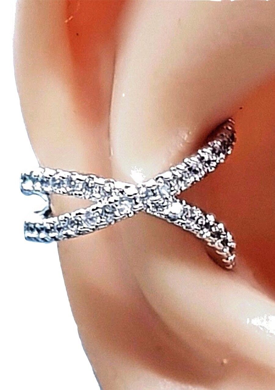 Ear Cuff Infinity Criss Cross 925 Silver Orbital Earring CZ Jewelry Non Bendable
