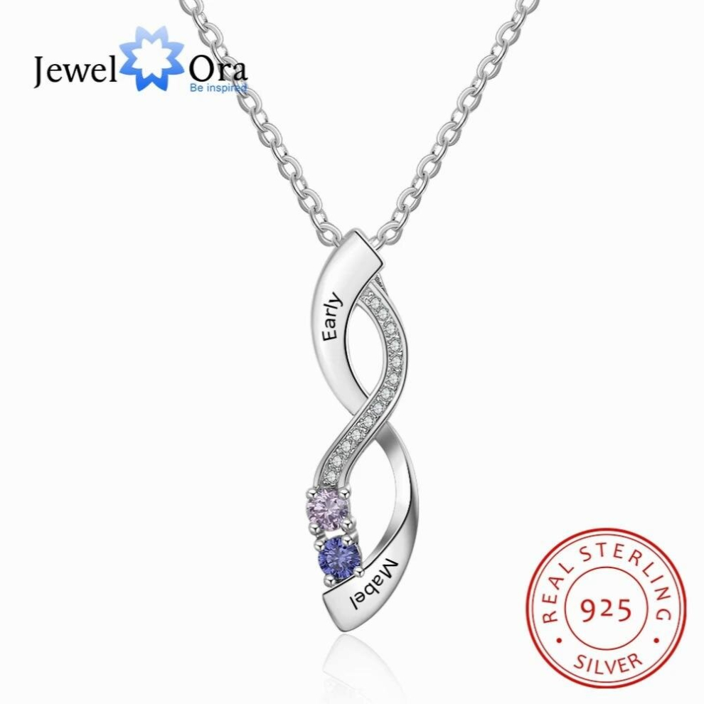 JewelOra 925 Sterling Silver Engraved Pendant Personalized Infinity Name Necklaces with 2 Birthstones S925 Silver Jewelry