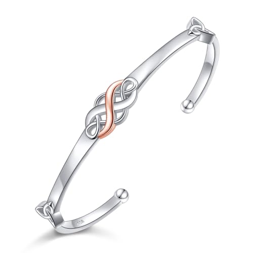 DAOCHONG Two Tone Irish Celtic Knot Bracelet 925 Sterling Silver Infinity Love Good Luck Irish Cuff Bangle Bracelets Birthday Valentines Day Gifts Jewelry for Women