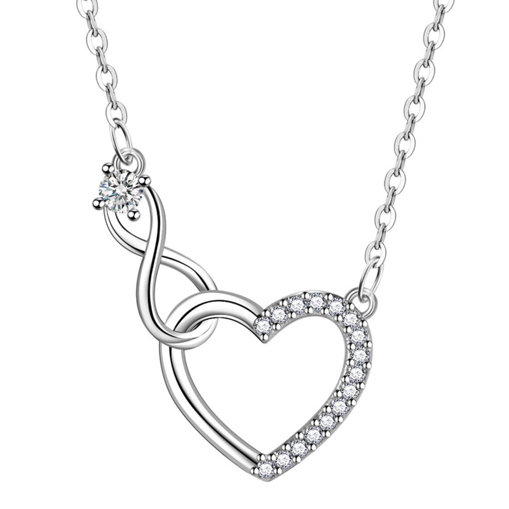 XKUN Necklaces 925 Sterling Silver Zircon Hollow Heart Necklaces For Women Infinity Love Clavicle Chain Necklace Jewelry-A