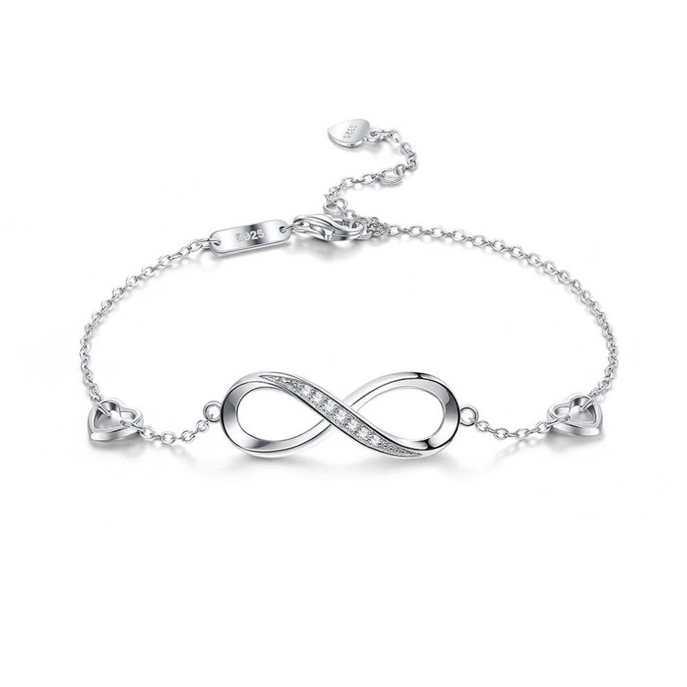 925 Silver Infinity Symbol Inlay Zircon Bracelet Women's Heart Bracelet Jewelry