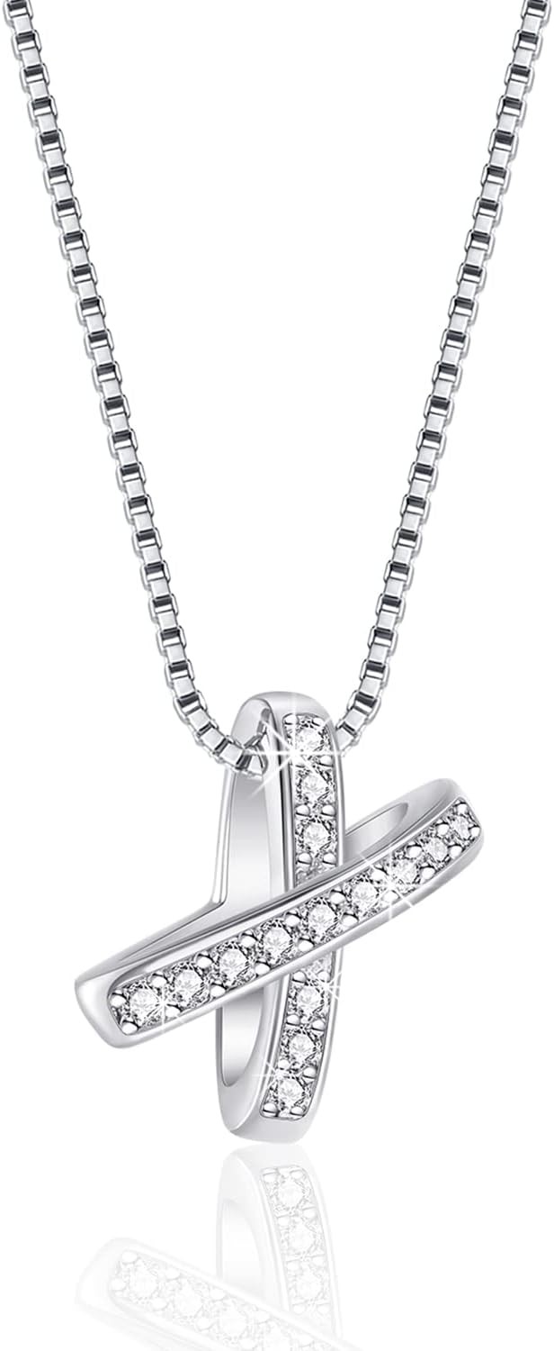 Yumilok Jewelry 925 Sterling Silver Cubic Zirconia Classic Infinity Symbol Cross Pendant Necklace for Women/Girls
