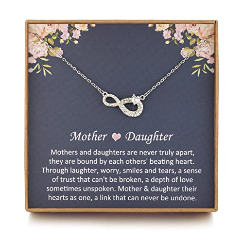NOURISHLOV Mother and Daughter Necklace, Sterling Silver Infinity with Heart Necklace for Mom, Mum Gifts from Daughter, Mothers Day Gifts, Birthday Jewelry