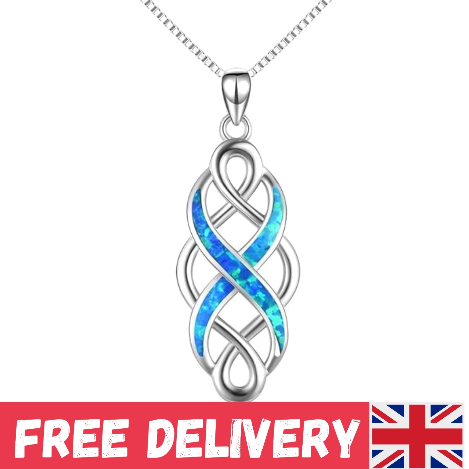 YFN Celtic Knot Necklace Created Opal Pendant Sterling Silver Infinity Love Jewelry (Blue Opal Necklace)