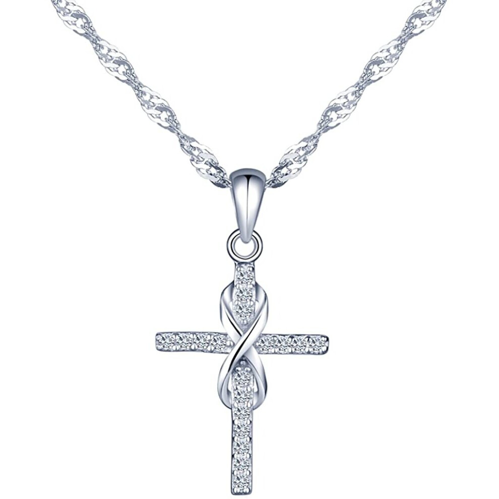 Yumilok Jewelry 925 Sterling Silver Cubic Zirconia Elegant Infinity Symbol Cross Pendant Necklace for Women/Girls