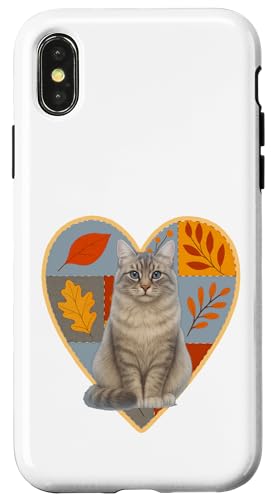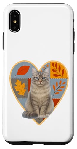 Silver Siberian Forest Cat Autumn Fall Patchwork Leaves Hear Case for iPhone XS Max