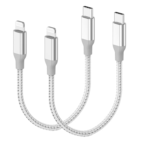 USB C to Lightning Cable 30CM, 2 Pack Short iPhone Charger Cable 3A Fast Charging Type C Lightning Cable for Apple iPhone 14 13 12 11 Pro Max SE X XR XS 8 7 6 Plus, Silver