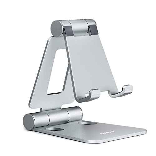 Nulaxy Cell Phone Stand, Fully Foldable Adjustable Desktop Phone Holder Cradle Dock Compatible with iPhone 17 16 15 14 13 12 11 Pro Xs Max Xr X 8, HUAWEI, Galaxy, Nintendo Switch, All Phones - Silver