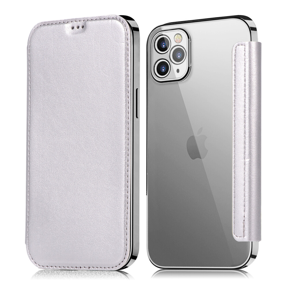 (silver, iPhone XS) Suitable for iPhone 14 Xuanya electroplating transparent TPU mobile phone leather case 13pro flip phone case 13mini card case