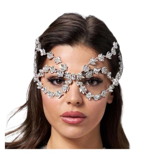 YXADGML Sparkling Rhinestones Fringe Mask Pearl Banquet Mask Wholesale Halloween For Face Women Sexy Fashion Head Hair Jewelry Rhinestone Accessories Gifts(Silver Plated)