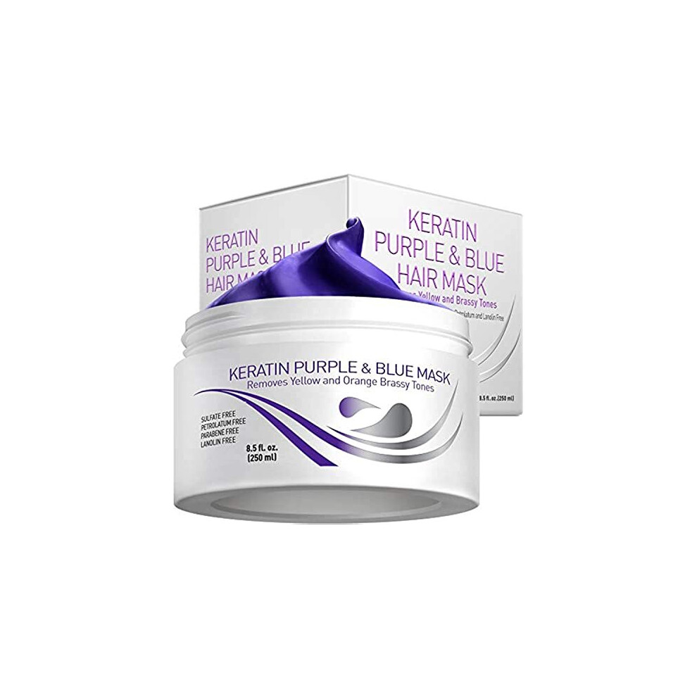Vitamins Keratin Purple Hair Mask - Violet Blue Protein Deep Conditioner Treatment - Toner for Blonde Platinum Silver Grey Ash or Brown Coloured Dry