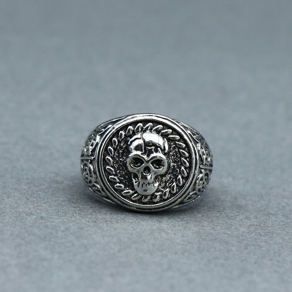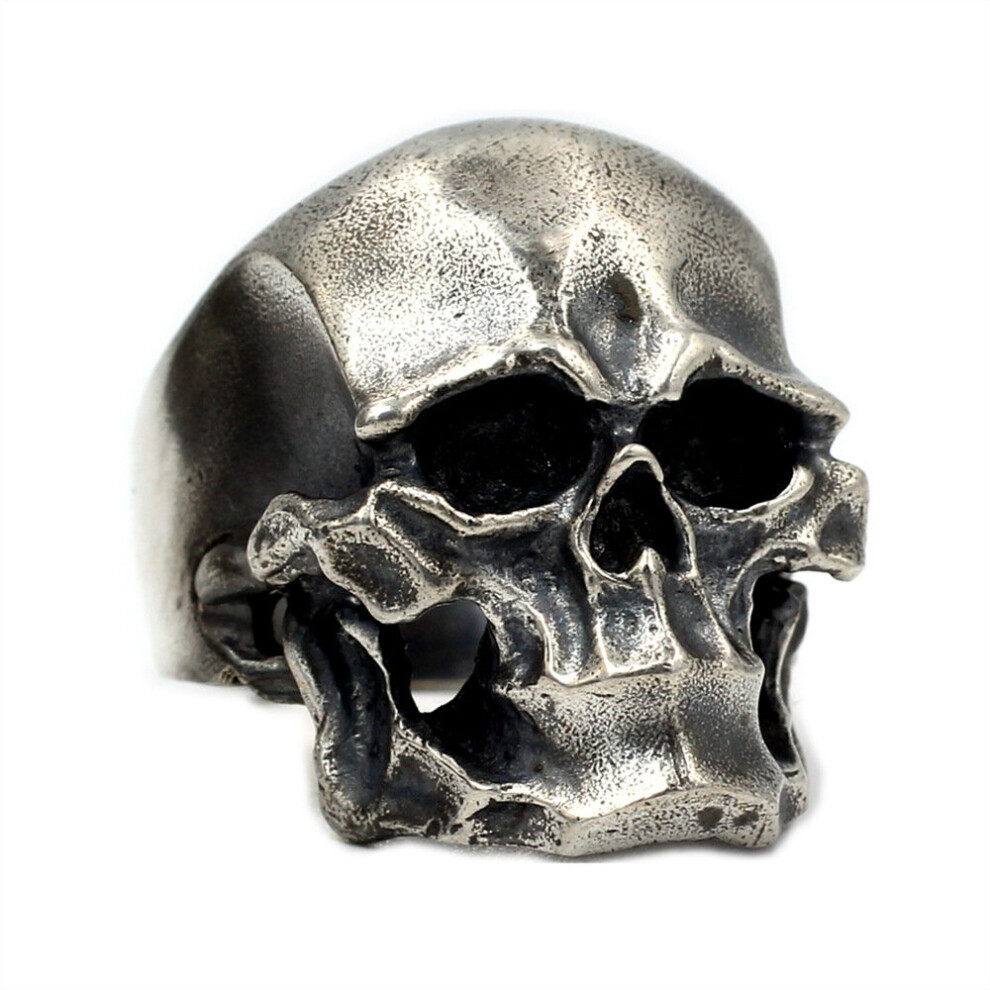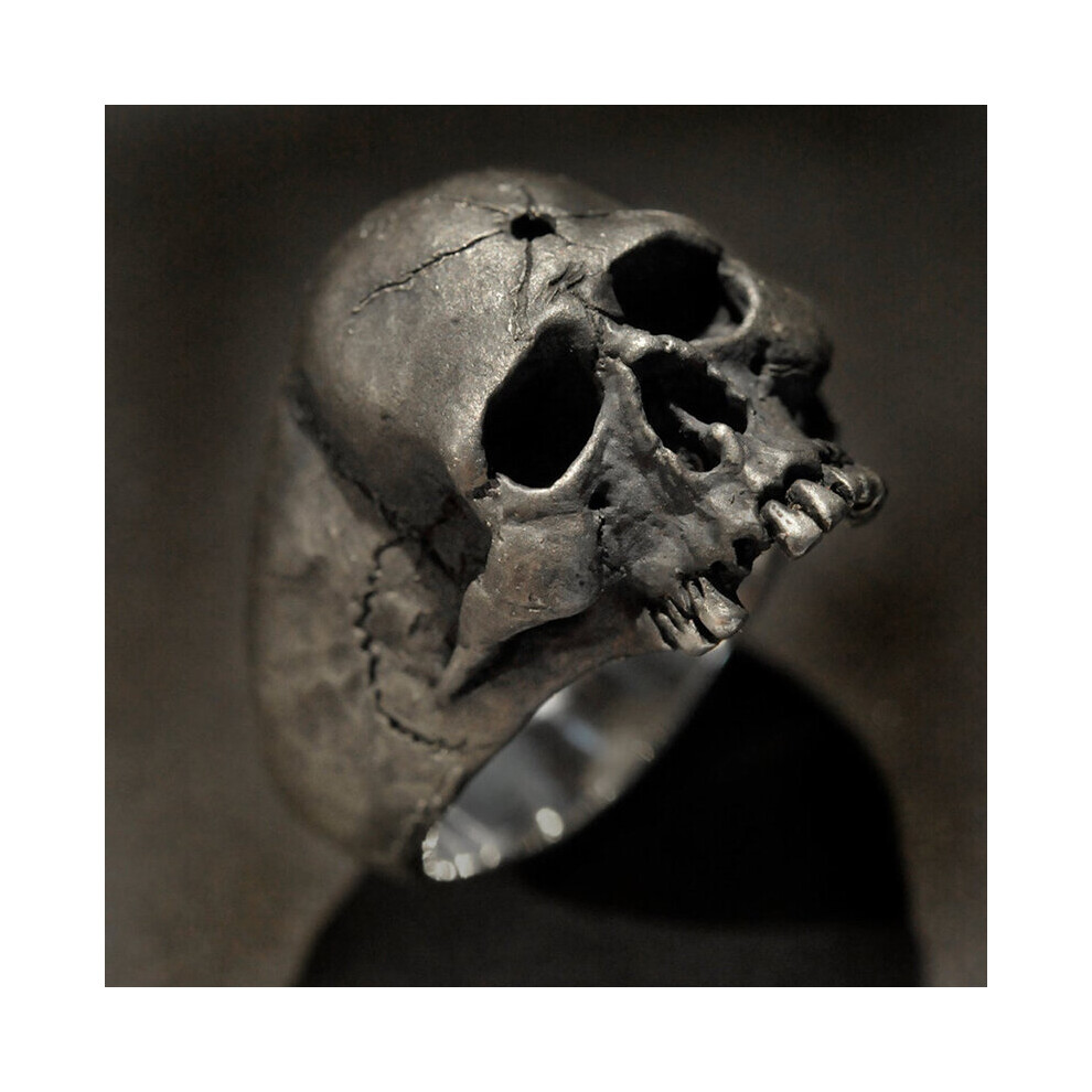 Vintage 100% 925 Sterling Silver Mens Calvarium Skull Ring Gothic Biker Ring Motorcycle Band jewellery