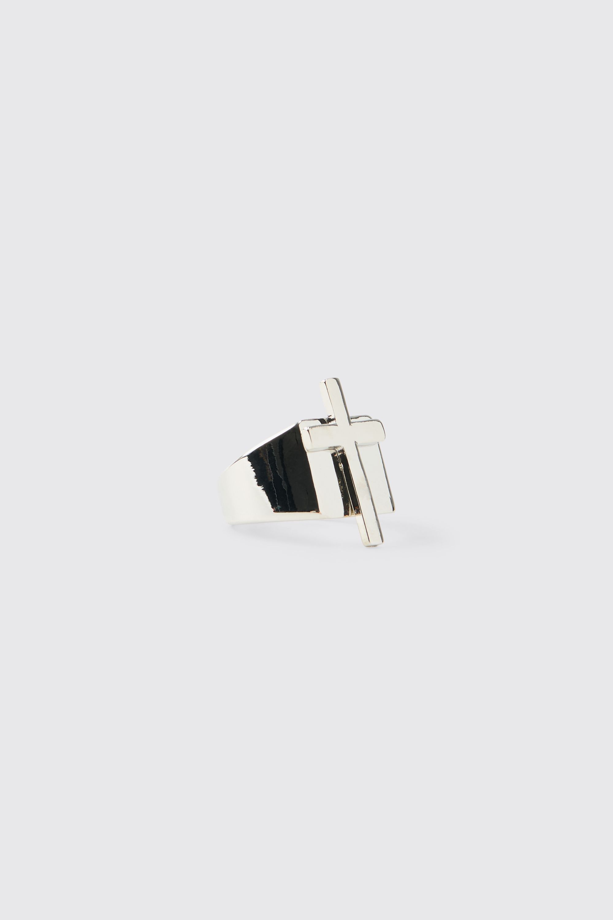 boohooMAN Mens Silver Cross Ring Zinc - Size Small/Medium