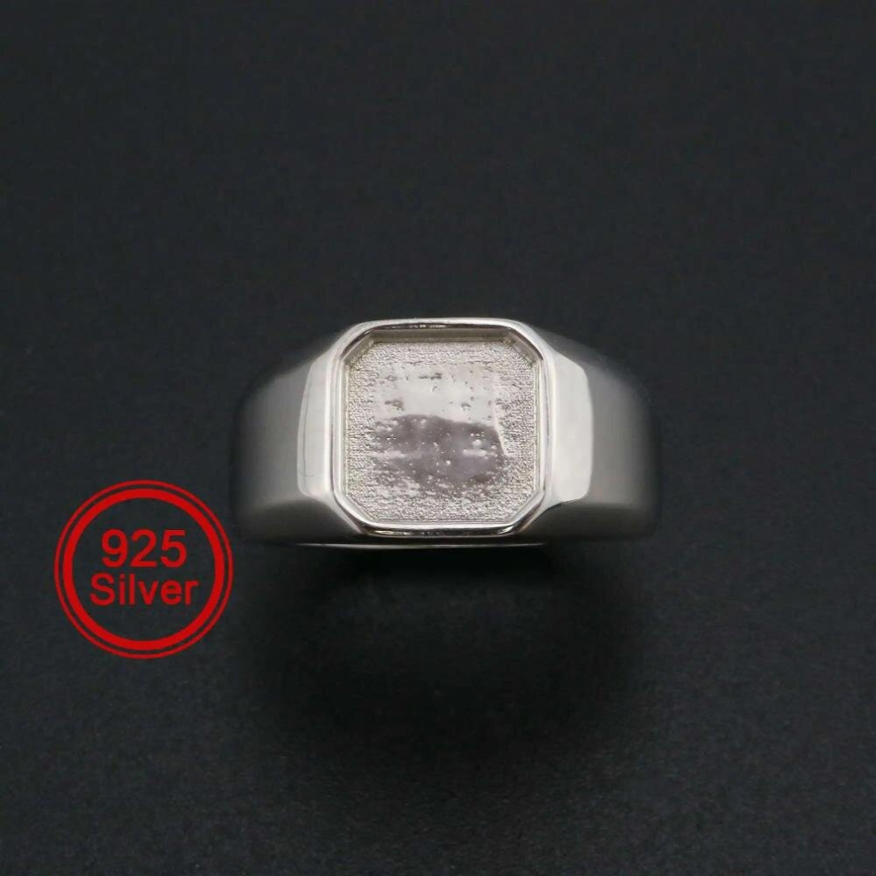 9MM Square Bezel Ring Settings Solid Back Breast Milk Resin 925 Sterling Silver DIY Mens Adjustable Ring 1294222