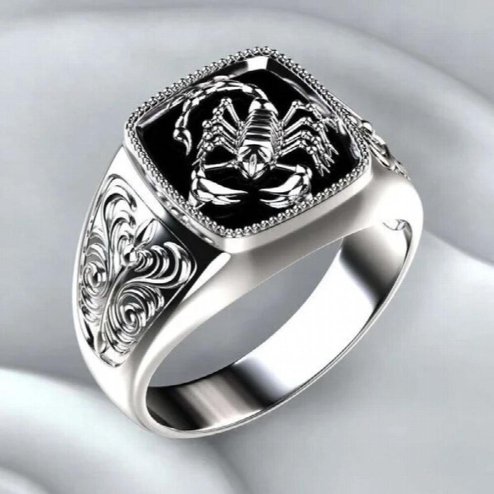 925 Silver Vintage Embossed Mens Ring Scorpion Memorial Ring Vintage Punk Style Ring Jewelry