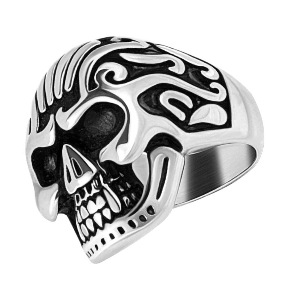 Silver Mens Ring Gothic Knuckle Stainless Steel Rings Norse Jewelry for Skull Skulls Man