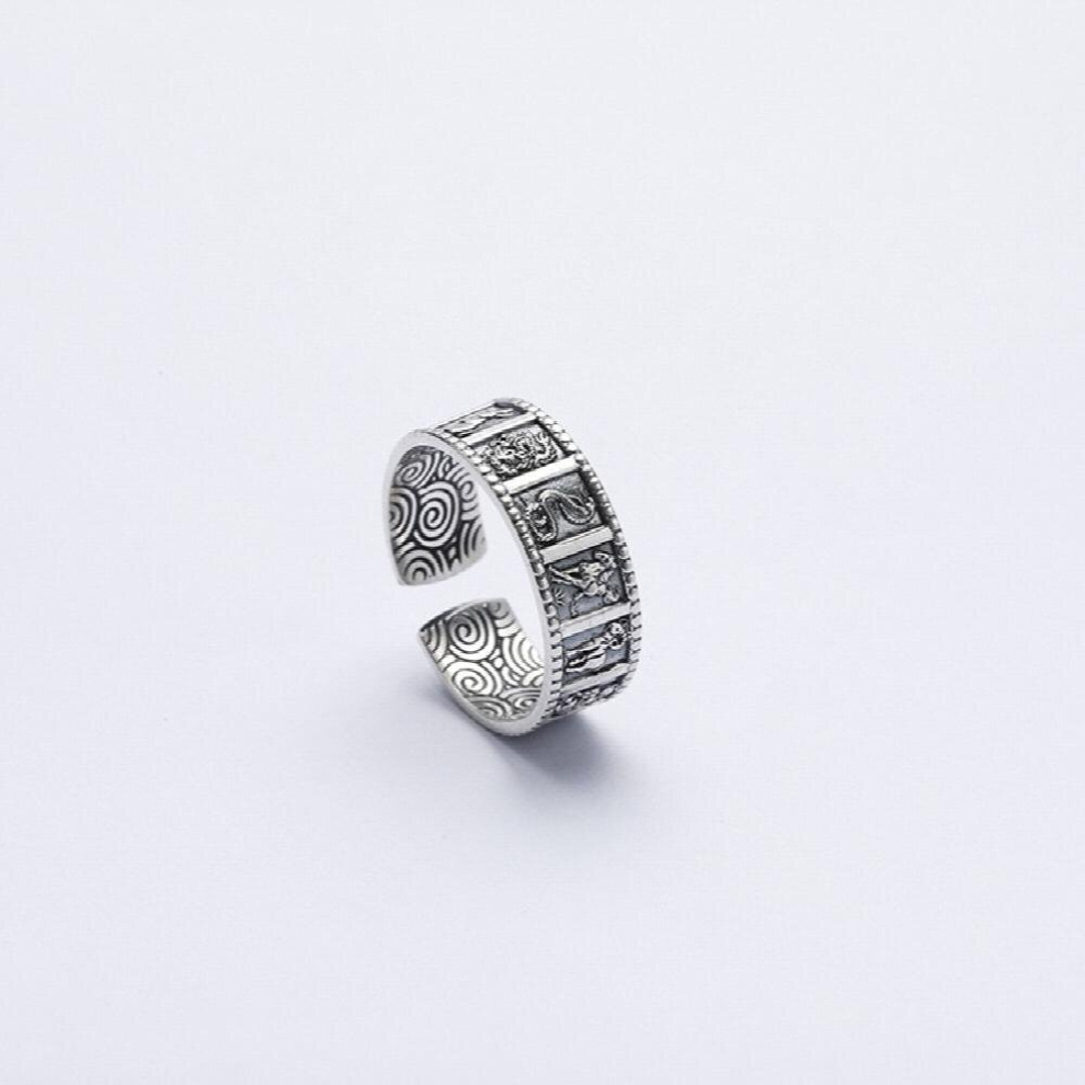 Retro 925 sterling silver ring Mens and womens zodiac ring Minimalist Jewelry 925 Jewelry Anti-allergy
