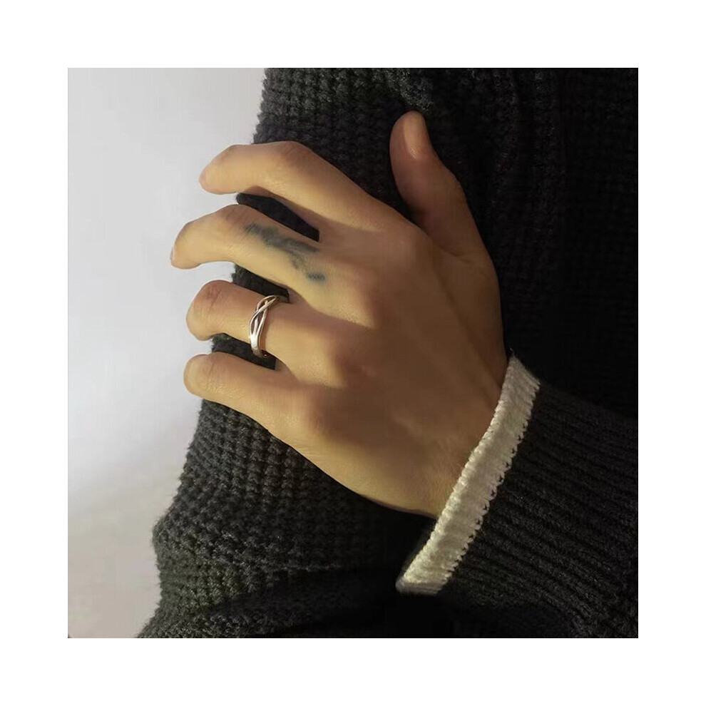 925 Sterling Silver Ring Mens Open Striped XINGX Personality Ins Style Retro Forefinger Ring