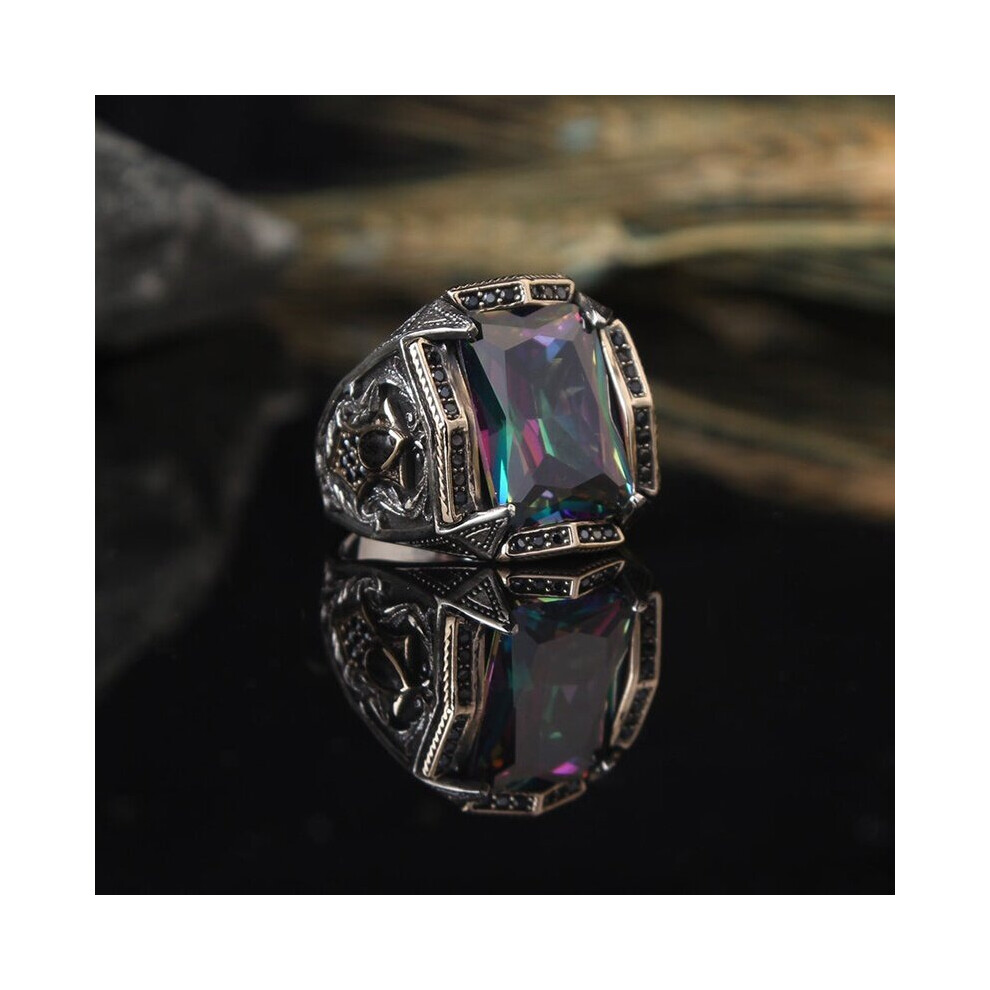 Stylish Silver Mens Ring MysticTopaz GemStone Men Silver Ring Silver Ring Size 5 11