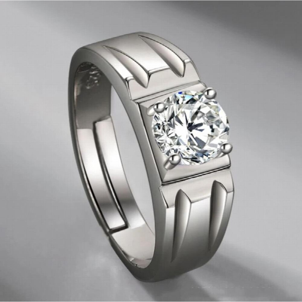 Style Silver Moissanite Mens Zircon Ring and Generous Jewelry Proposal Engagement Gift