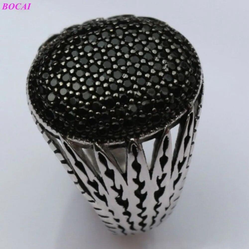 S925 Sterling Silver Male Ring Inlaid Zircon Middle East Thai Silver Personality Mens Ring
