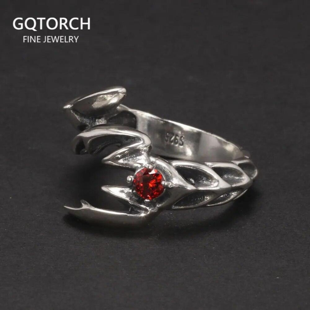 Solid 925 Sterling Silver Jewelry Mens Ring With Garnet Natural Stone Scorpion Male Openning Ring
