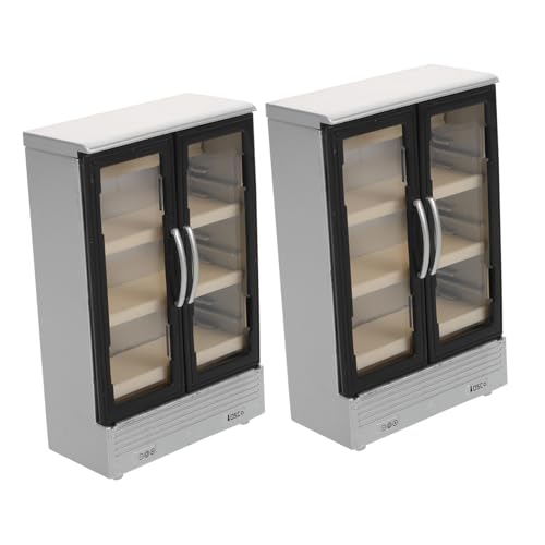 KOMBIUDA 2pcs Mini Refrigerator Ornaments Miniature Scene Side Cabinet Double Door Mini Fridge Dollhouse Furniture Silver Plastic