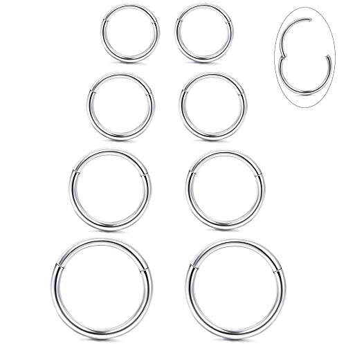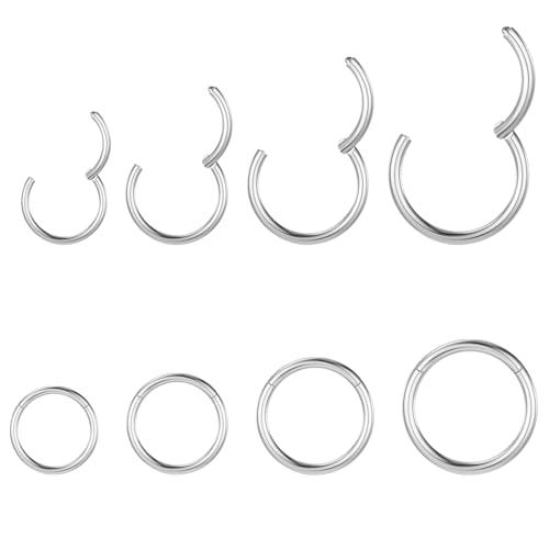Morfetto 8Pcs G23 Titanium Nose Ring Hinged Clicker Segment Nose Rings Hoop Silver Septum Ring Tragus Helix Hoop Cartilage Sleeper Earrings Conch Daith Septum Helix Piercing Jewellery 16G 6/8/10/12mm