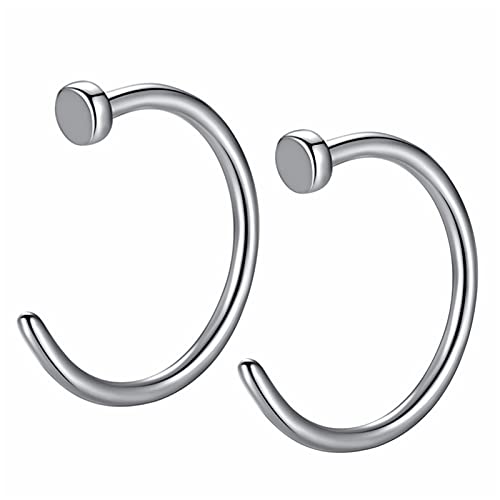 Popuhoops 2pcs 316l Surgical Steel Open Nose Hoop Faux Fake Nose Rings 20 Gauge 8mm Nostril Piercing Jewelry Silver Stainless Steel 20g Women Men Lip Septum Body Jewelry