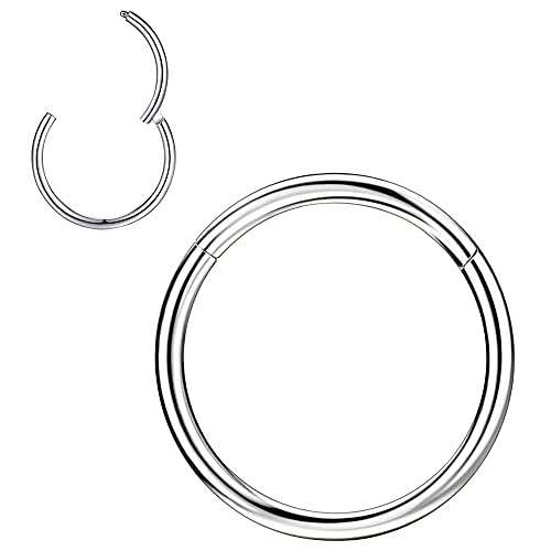 FOLLOWMOON 16mm Septum Ring Silver Nose Rings Hoop 16 Gauge Nose Hoop Helix Daith Tragus Earrings Hinged Segment Septum Clicker Lip Rings 16g Cartilag