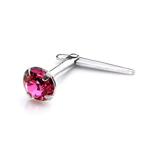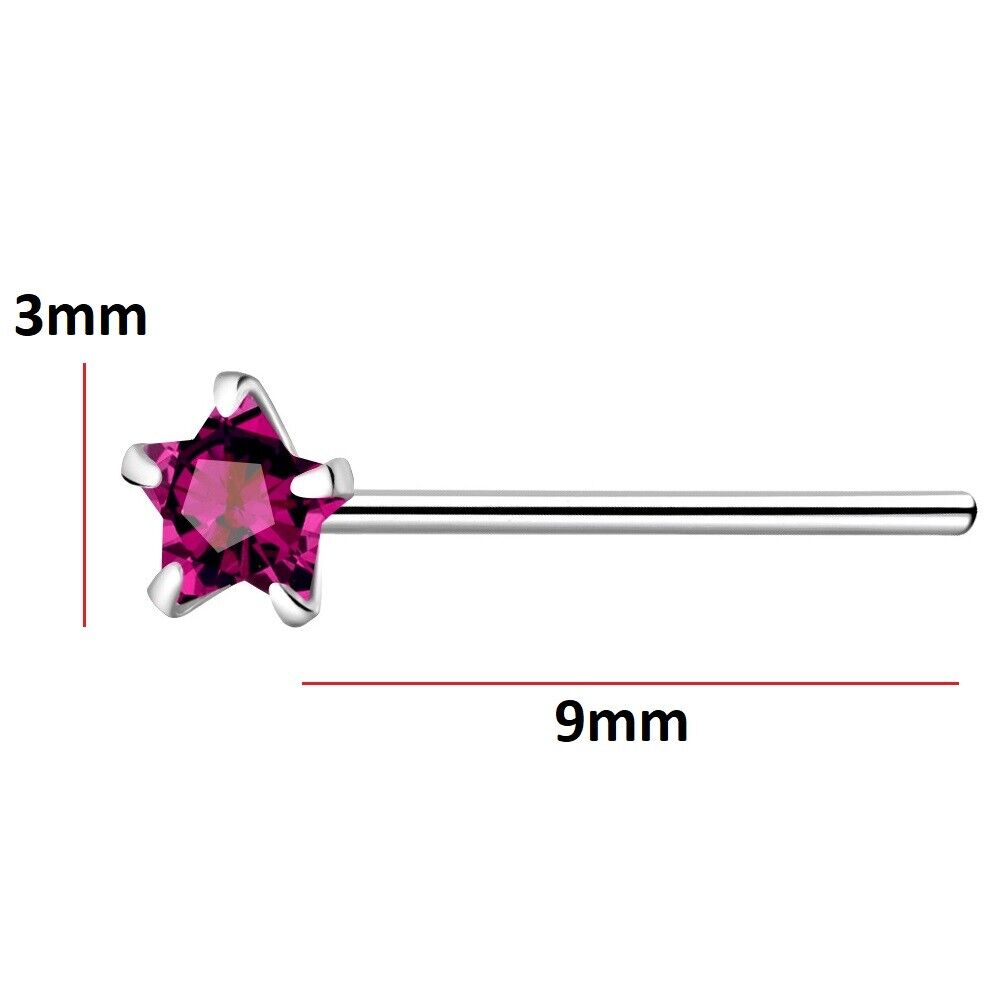 925 Sterling Silver Nose Stud 3mm Fuchsia Pink CZ Star straight pin bend to fit