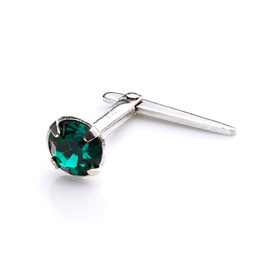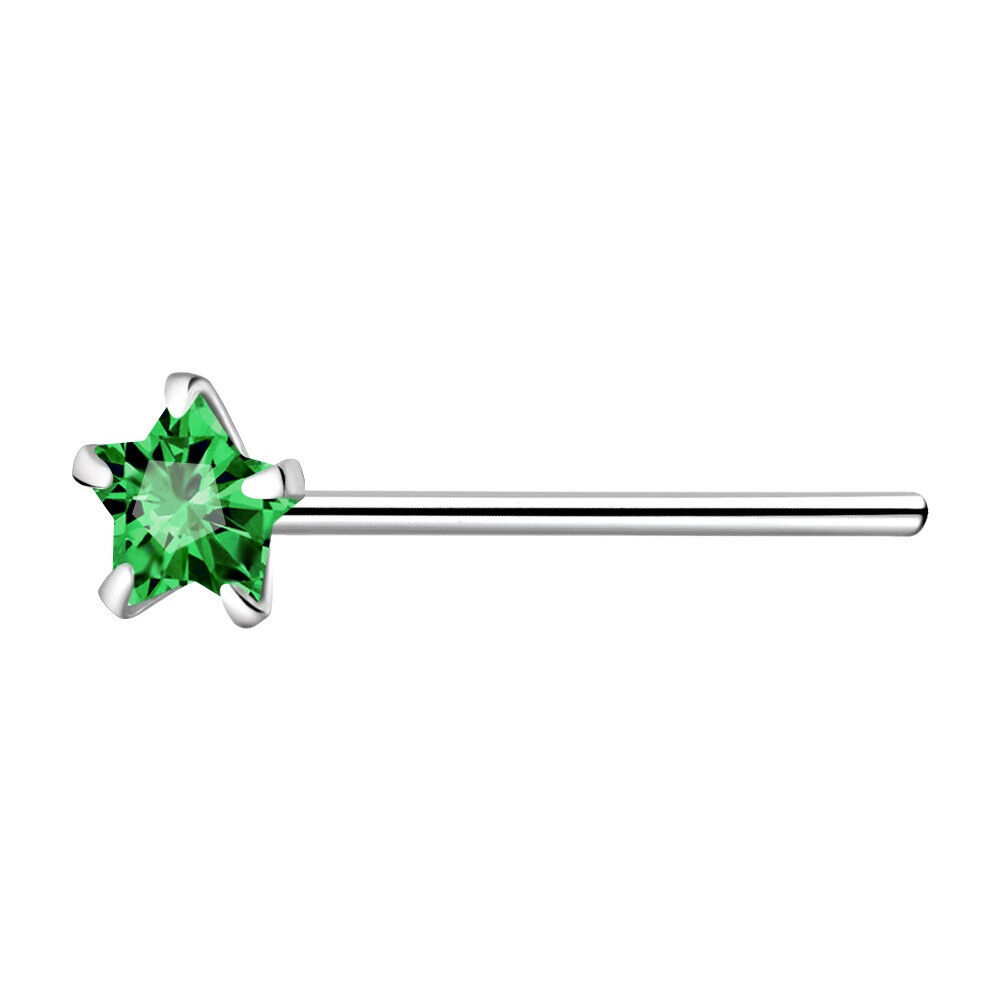 925 Sterling Silver Nose Stud 3mm Emerald Green CZ Star straight pin bend to fit