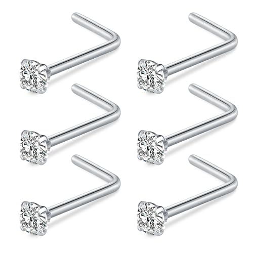 AVYRING 20G Titanium Silver Nose Stud, L Shape Nose Studs Rings with Diamond CZ, Thin Nose Piercing Jewelry for Women & Men